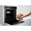 Um dos grandes destaques deste forno é o Termômetro Meat Control, que permite monitorar a temperatura interna das carnes diretamente pelo painel. Basta inserir o termômetro na carne e escolher o ponto desejado; o forno avisa quando está pronto, garantindo resultados perfeitos. A tecnologia de Convecção também contribui para uma melhor distribuição do calor, reduzindo o tempo de cozimento e assegurando que os pratos assem de maneira uniforme, mesmo quando duas assadeiras são utilizadas ao mesmo tempo.