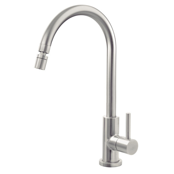 Sua casa vai ganhar toques de estilo e elegância com a Torneira de Bancada Tramontina Arko em Aço Inox com acabamento acetinado. Muito resistente, é ideal para a bancada de diversos ambientes. Produzida em aço inox AISI 304, material nobre e altamente durável, garante segurança, pois não possui chumbo em sua composição. A bica tem arejador permitindo uma melhor mistura da água com o ar, reduzindo o consumo e proporcionando a sensação de maior vazão. Possui ainda sistema de anti-gotejamento e rotação de 360°.